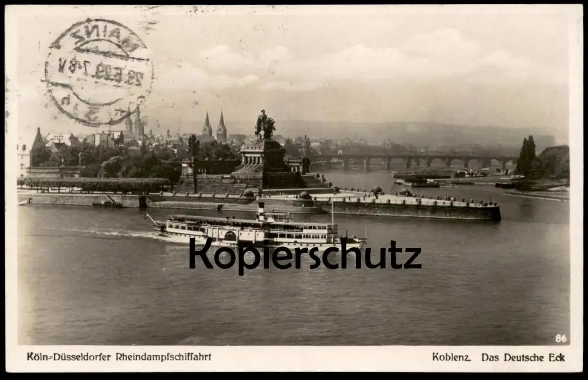 ALTE POSTKARTE KÖLN DÜSSELDORFER RHEINDAMPFSCHIFFAHRT KOBLENZ DEUTSCHES ECK RHEIN Schiff Ansichtskarte AK cpa postcard