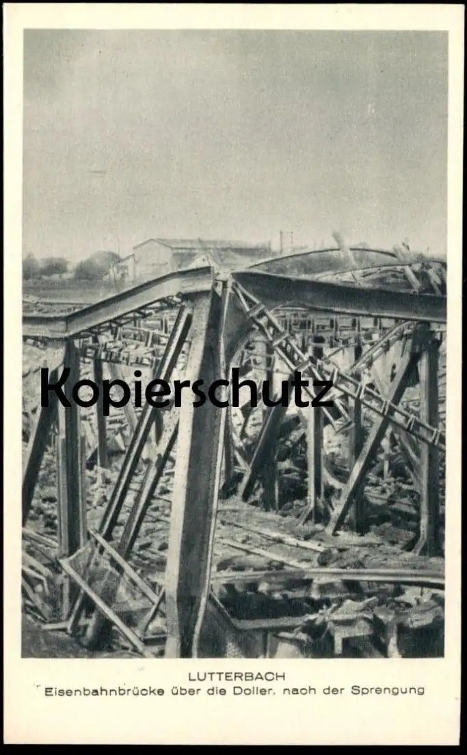 ALTE POSTKARTE LUTTERBACH EISENBAHNBRÜCKE ÜBER DIE DOLLER NACH DER SPRENGUNG