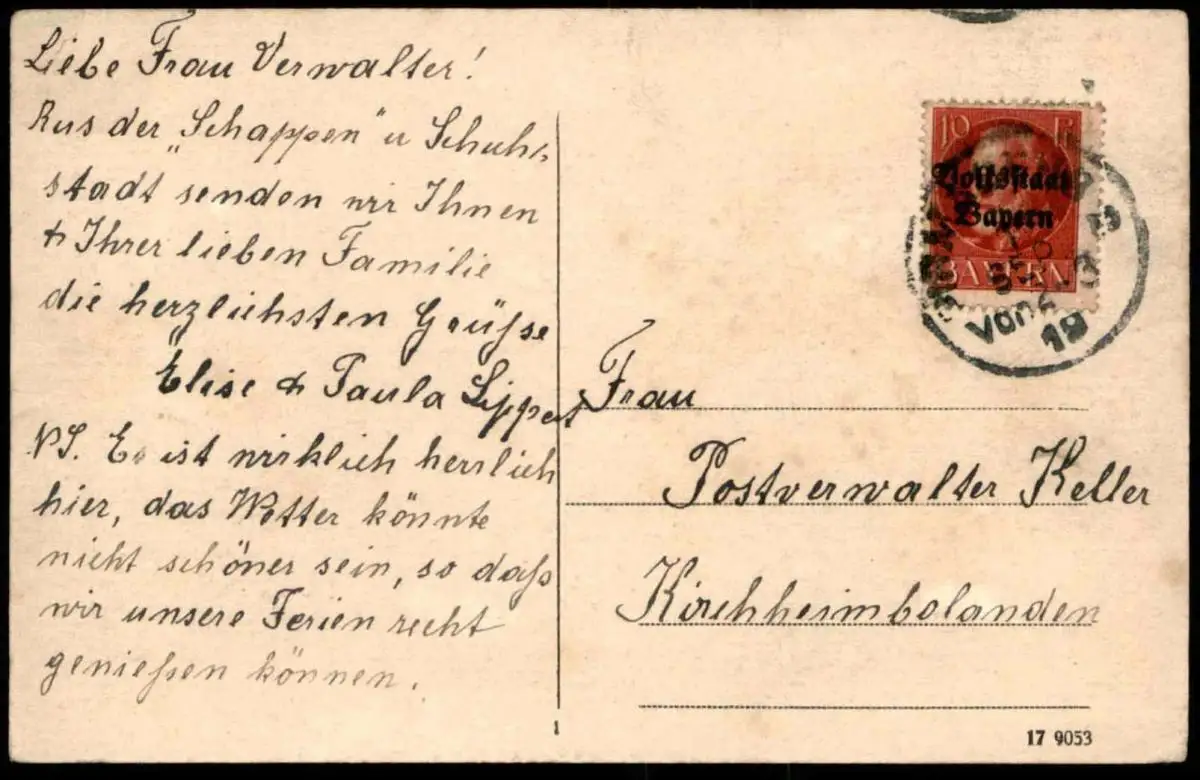 ALTE POSTKARTE PIRMASENS SCHLOSS- UND HAUPTSTRASSEVerlag: unbekanntGelaufen: 01.09.1919 mit Stempel Pirmasens und Briefmarkenaufdruck Volksstaat Bayern an Frau Postverwalter Keller KirchheimbolandenErhaltung (s. Scan): gut / 916281