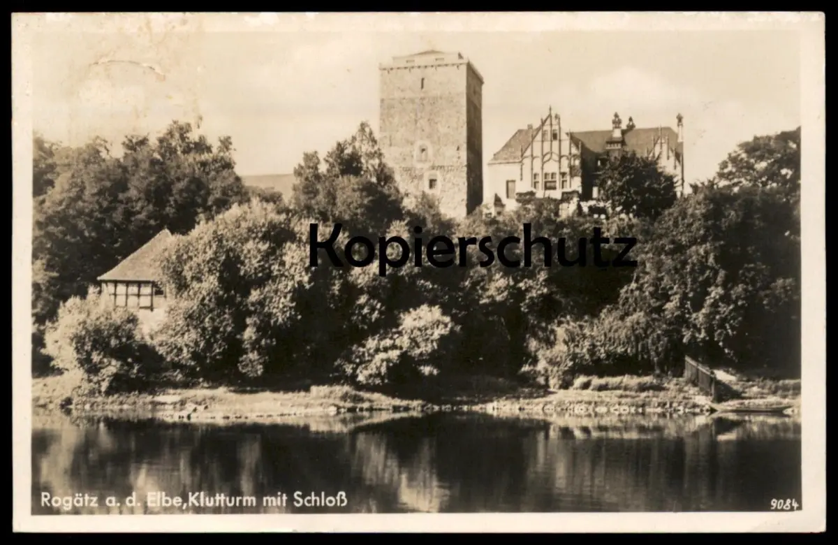 ALTE POSTKARTE ROGÄTZ AN DER ELBE KLUTTURM MIT SCHLOSS