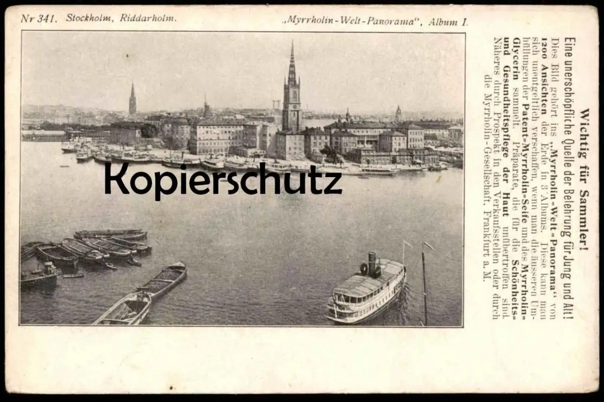 ALTE POSTKARTE STOCKHOLM RIDDARHOLM MYRRHOLIN-WELT PANORAMA Nr. 341 MYRRHOLIN FRANKFURTVerlag: Myrrholin Frankfurt