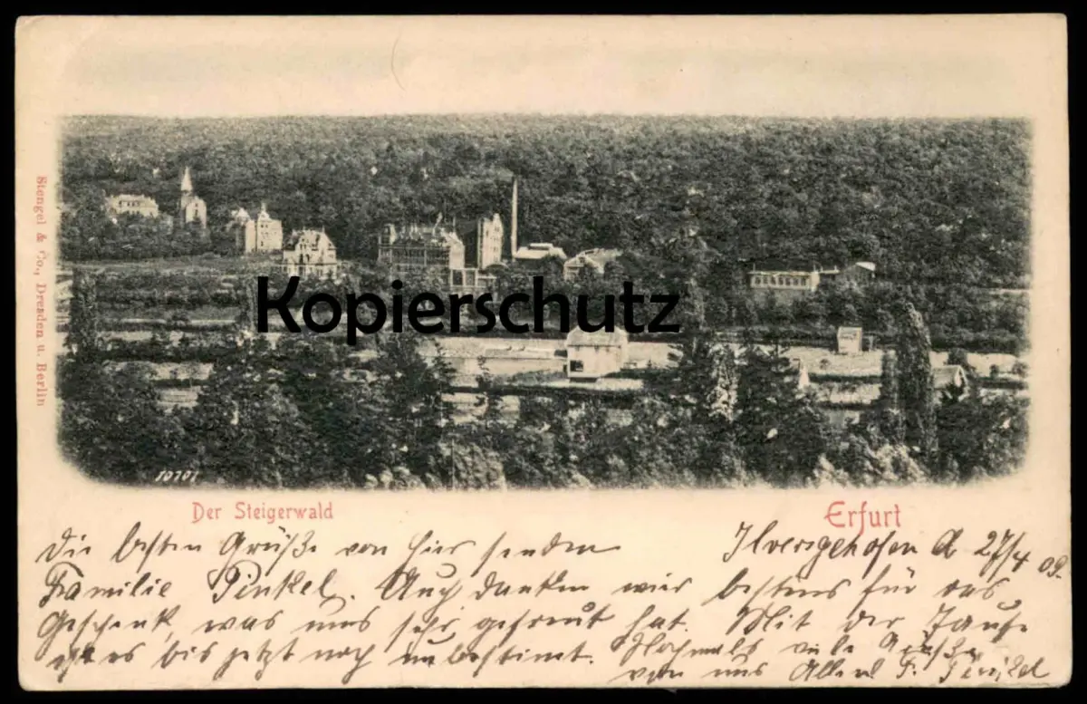 ALTE PRÄGE-POSTKARTE ERFURT DER STEIGERWALD RELIEFKARTE, deutliche Hervorhebung der Häuser, Bäume