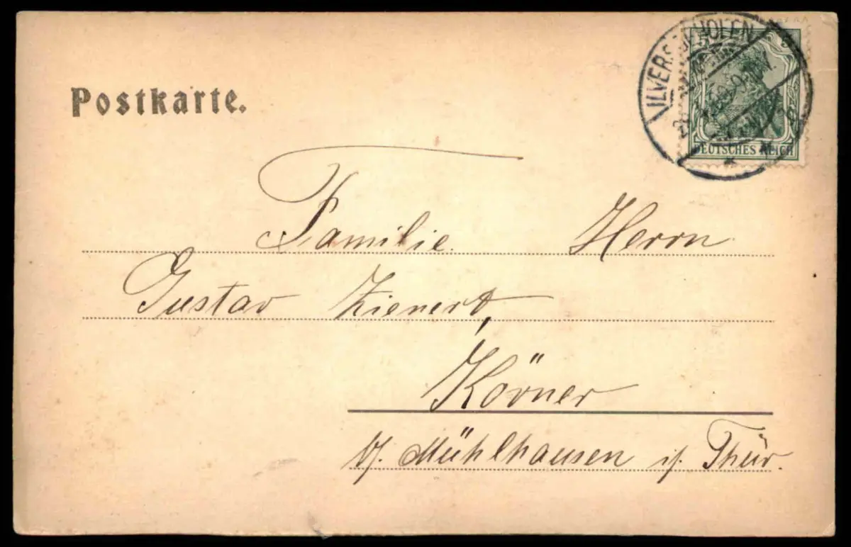 Gelaufen: 28.04.1909 mit Stempel Ilversgehofen nach Körner bei Mühlhausen Thüringen