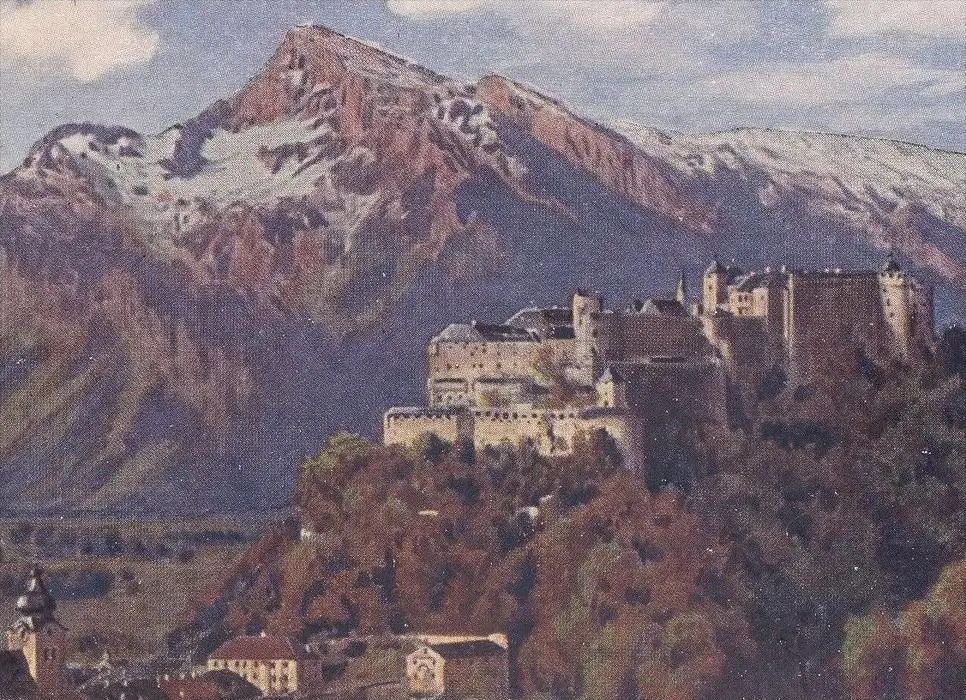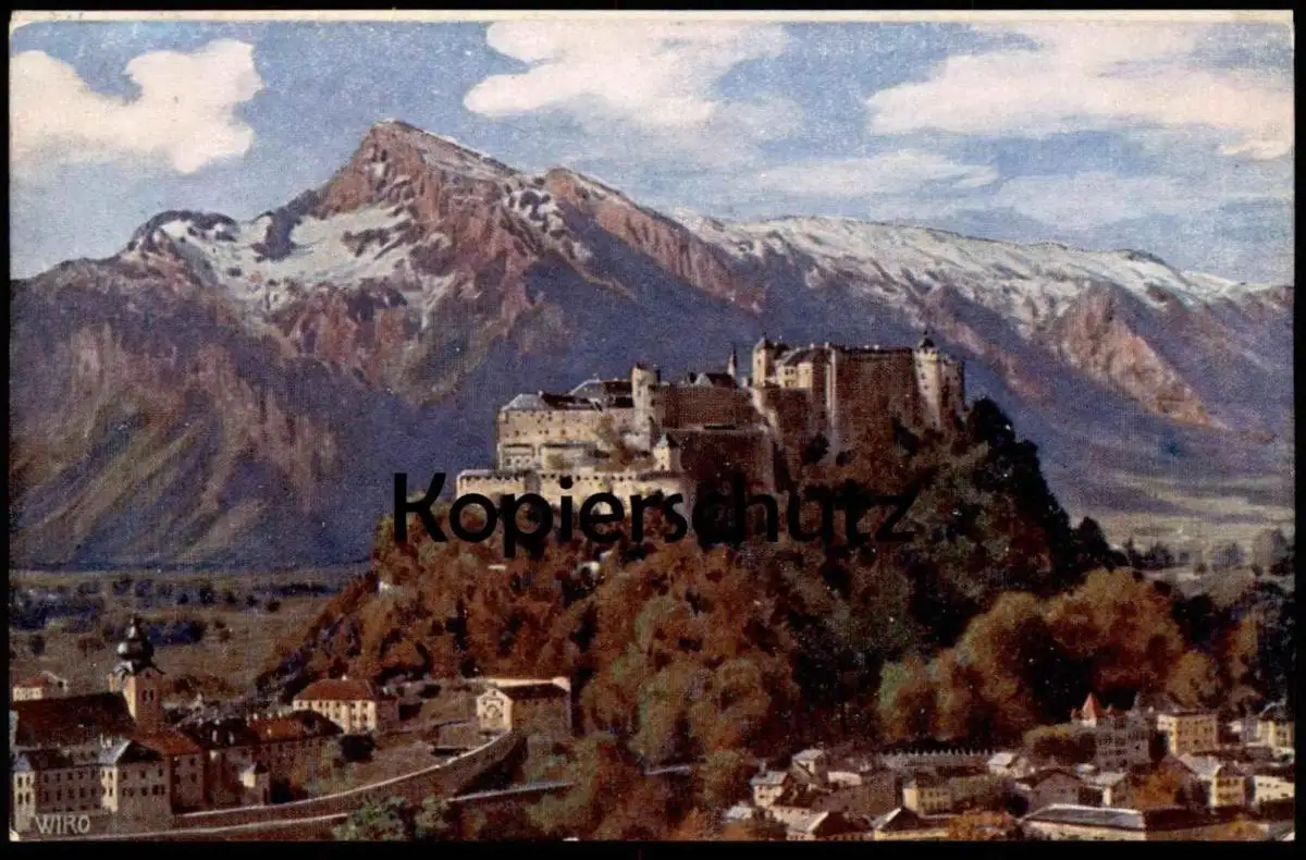 ALTE WIRO KÜNSTLER POSTKARTE SALZBURG FESTUNG & UNTERSBERG Verlag Kunsthandlung Mora postcard cpa AK Ansichtskarte