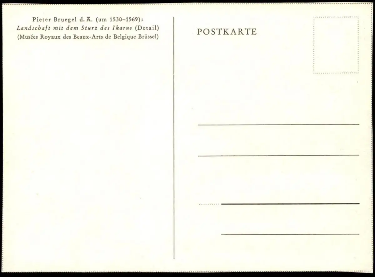 ÄLTERE KÜNSTLER POSTKARTE PIETER BRUEGEL LANDSCHAFT MIT DEM STURZ DES IKARUS MUSÉES ROYAUX BEAUX ARTS BRÜSSEL postcard