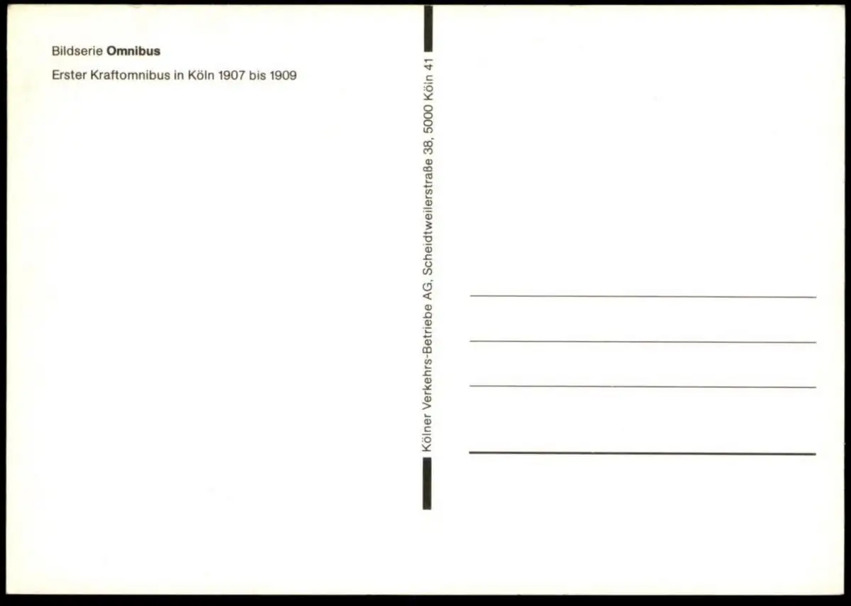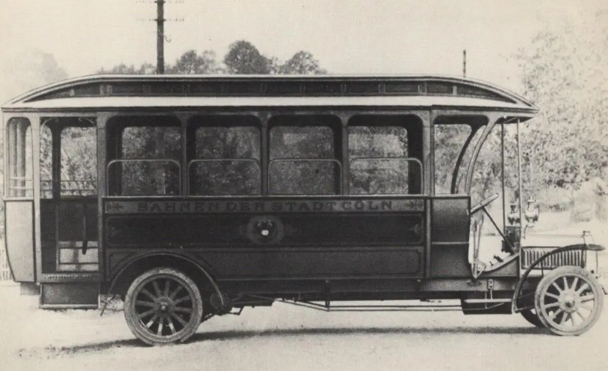 ÄLTERE POSTKARTE BILDSERIE OMNIBUS ERSTER KRAFTOMNIBUS IN KÖLN 1907 BIS 1909Verlag: Kölner Verkehrs-Betriebe AG, Köln