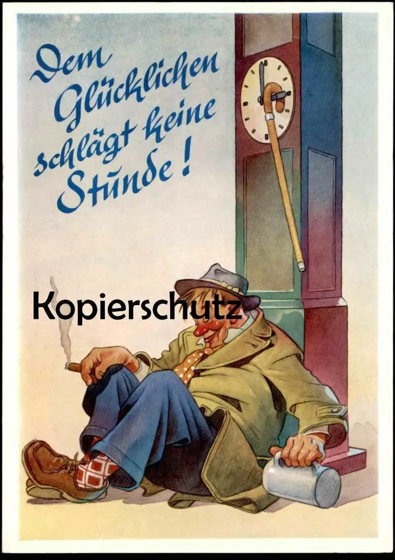 ÄLTERE POSTKARTE DEM GLÜCKLICHEN SCHLÄGT KEINE STUNDE BETRUNKEN ALKOHOLISIERT