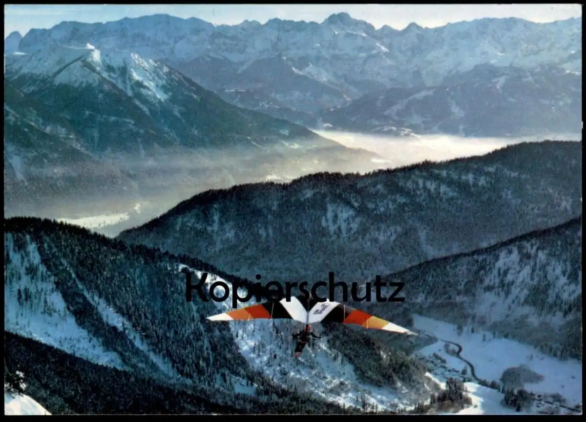 ÄLTERE POSTKARTE OBERAMMERGAU DRACHENFLIEGER IM WINTER DRACHENFLIEGEN hang gliding Bayern Ansichtskarte AK cpa postcard