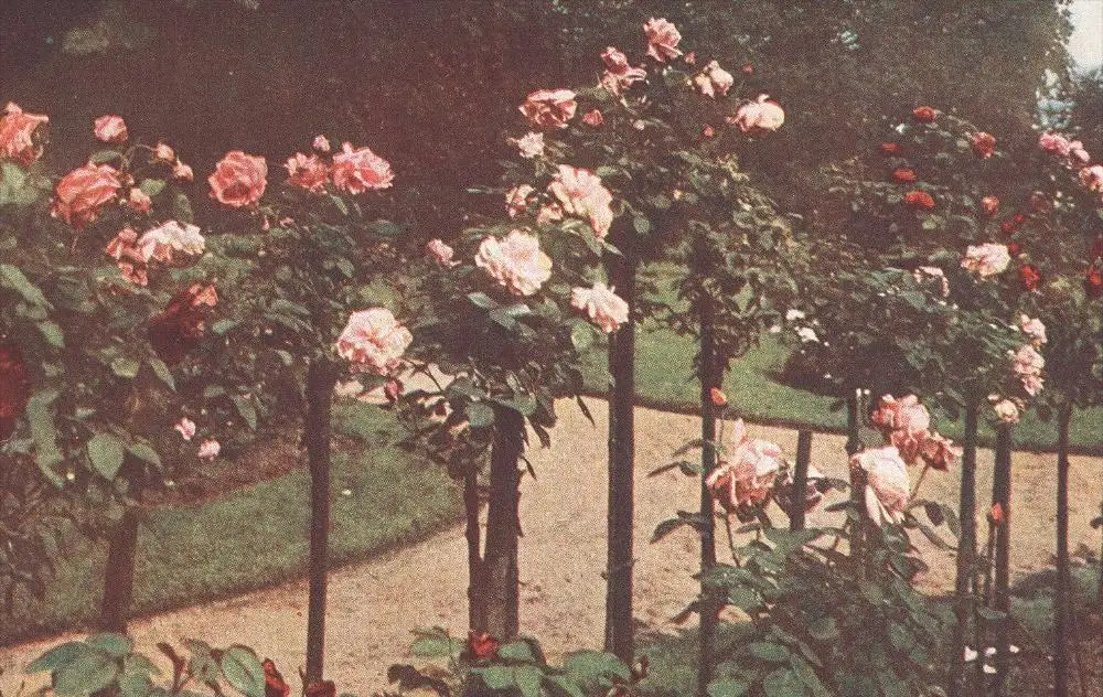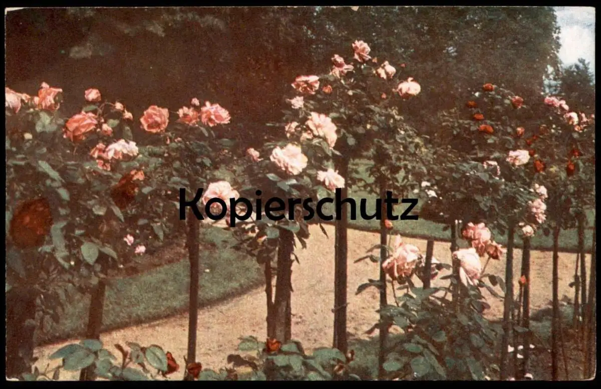 ÄLTERE POSTKARTE ROSENGARTEN FARBEN-AUFNAHME DIREKT NACH DER NATUR ROSENBEET Garten Flower Fleur Flowers Rosen Rose