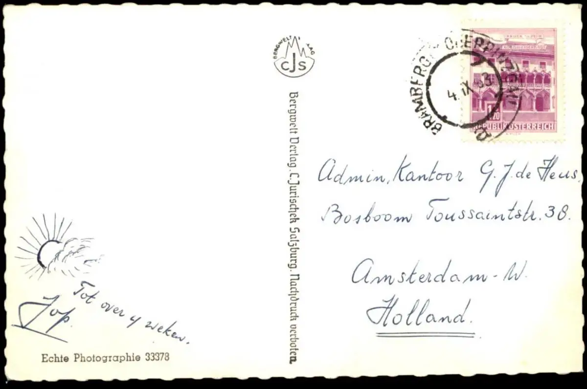 Gelaufen: 04.09.1963 mit Stempel Bramberg Oberpinzgau nach AmsterdamErhaltung (s. Scan): gut / 917384