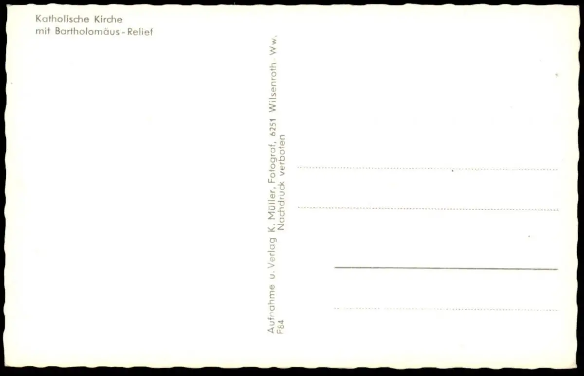 ÄLTERE POSTKARTE WILSENROTH WESTERWALD DORNBURG KATHOLISCHE KIRCHE MIT BARTHOLOMÄUS-RELIEFVerlag: K. Müller, Fotograf, Wilsenroth