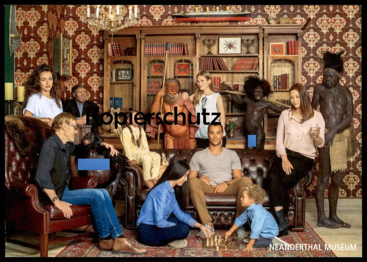 POSTKARTE NEANDERTHAL MUSEUM MENSCHEN SPIELEN SCHACH