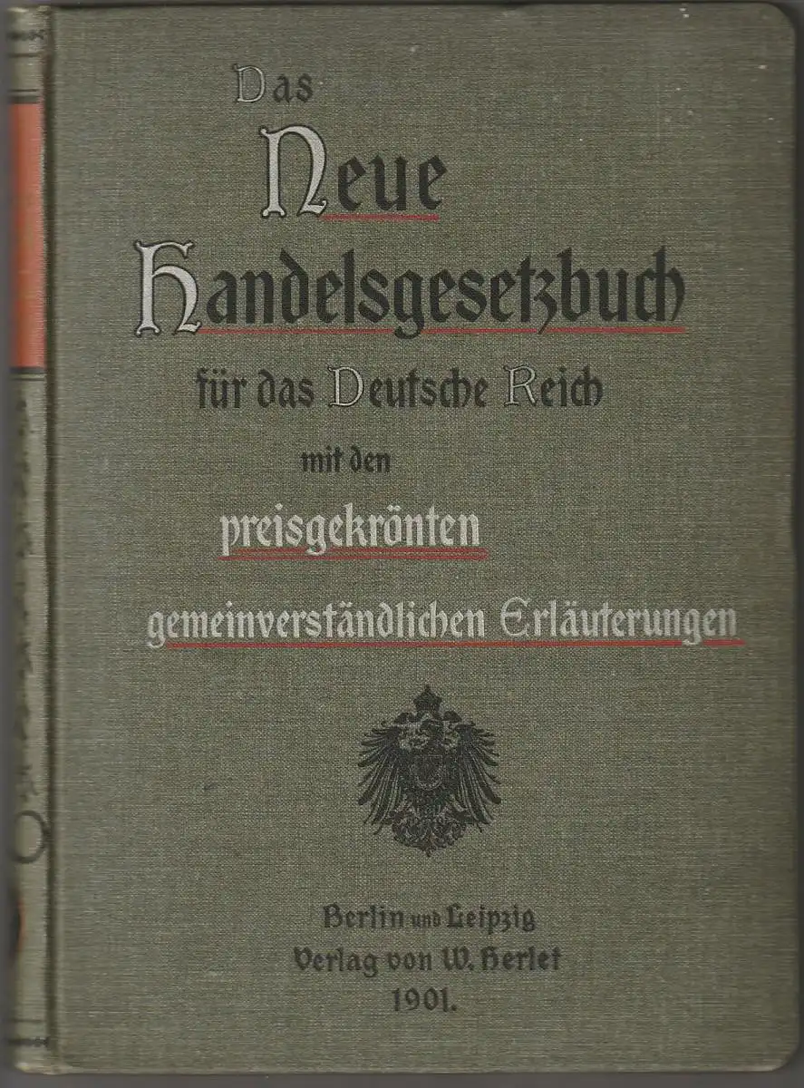 Mit einem Vorwort von Justizrat Dr. jur. Riesser zu Berlin. Im Anhang: Seehandel - Einführungsgesetz zum Handelsgesetzbuch - Ausführliches Sachregister - Theaterprogramm, Opernprogramm, Ballettprogramm, Musicalprogramm, Konzertprogramm, Theatermemorabilia, Programmhefte Sammlung, deutsche Theatergeschichte.