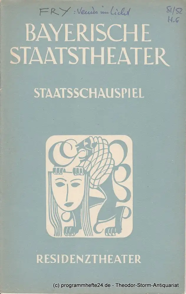 Bayerisches Staatstheater, Staatsschauspiel, Residenztheater, Alois Johannes Lippl: Programmheft Venus im Licht von Christopher Fry. 24. Mai 1952.