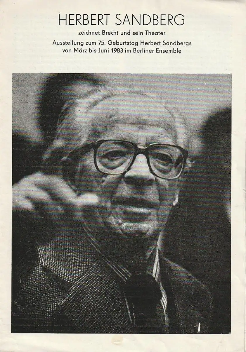 Berliner Ensemble Staatstheater der Deutschen Demokratischen Republik, Manfred Wekwerth: Programmheft AUSSTELLUNG HERBERT SANDBERG ZEICHNET BRECHT UND SEIN THEATER März bis Juni 1983 im Berliner Ensemble.