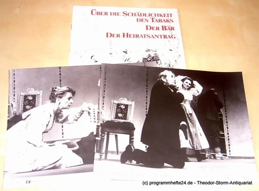 Titel:Programmheft Über die Schädlichkeit des Tabaks - Der Bär - Der Heiratsantrag. Drei komische Tragödien von Anton Tschechow. Spielzeit 1991 / 92. Mit 2 original Szenenfotos