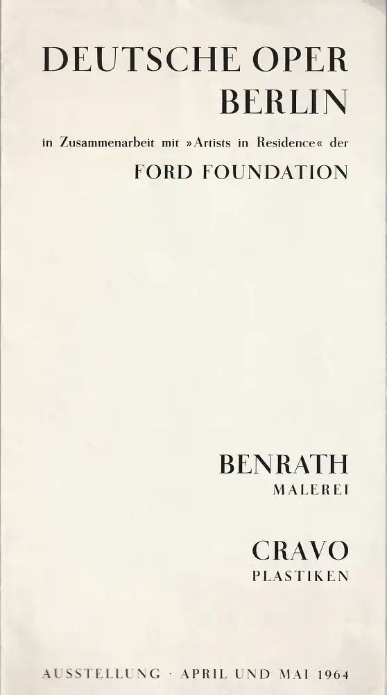 Deutsche Oper Berlin in Zusammenarbeit mit Artists in Residence der Ford Foundation. - Theaterprogramm, Opernprogramm, Ballettprogramm, Musicalprogramm, Konzertprogramm, Theatermemorabilia, Programmhefte Sammlung, deutsche Theatergeschichte.