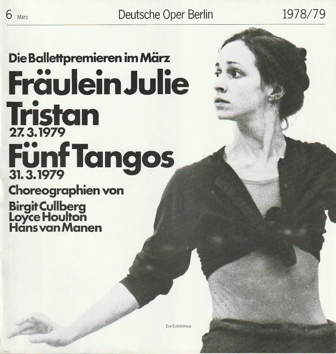 Titel:Programmheft BALLETTABEND FRÄULEIN JULIE / TRISTAN / FÜNF TANGOS Premiere 27. März 1979 Spielzeit 1978 / 79 Heft 6 März