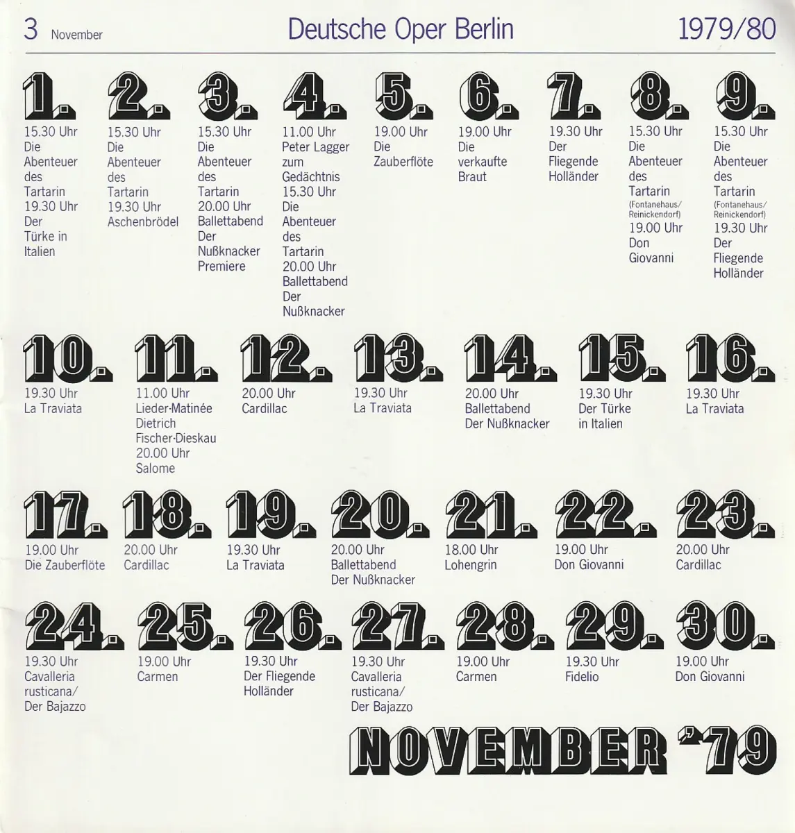 Deutsche Oper Berlin, Siegfried Palm, Karl Dietrich Gräwe, Edmund Gleede, Peter Kain: Programmheft Pietro Mascagni CAVALLERIA RUSTICANA / Ruggiero Leoncavallo DER BAJAZZO 27. November 1979 Spielzeit 1979 / 80 Heft 3 November.