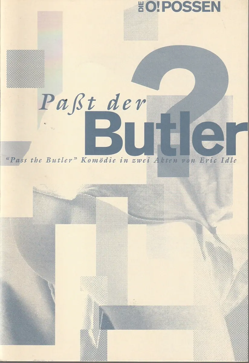 PASS THE BUTLER. Komödie in zwei Akten von Eric Idle. Mitwirkende: Heiko Walkenhorst, Frauke Raveling, Michael Ries, Heike Emmert, Michael Ries, Heike Emmert, Jochen Poiger, Kalliope Eberhardt, Peter Marz, Armin Ueberhofen, Rainer Litty - Theaterprogramm, Opernprogramm, Ballettprogramm, Musicalprogramm, Konzertprogramm, Theatermemorabilia, Programmhefte Sammlung, deutsche Theatergeschichte.