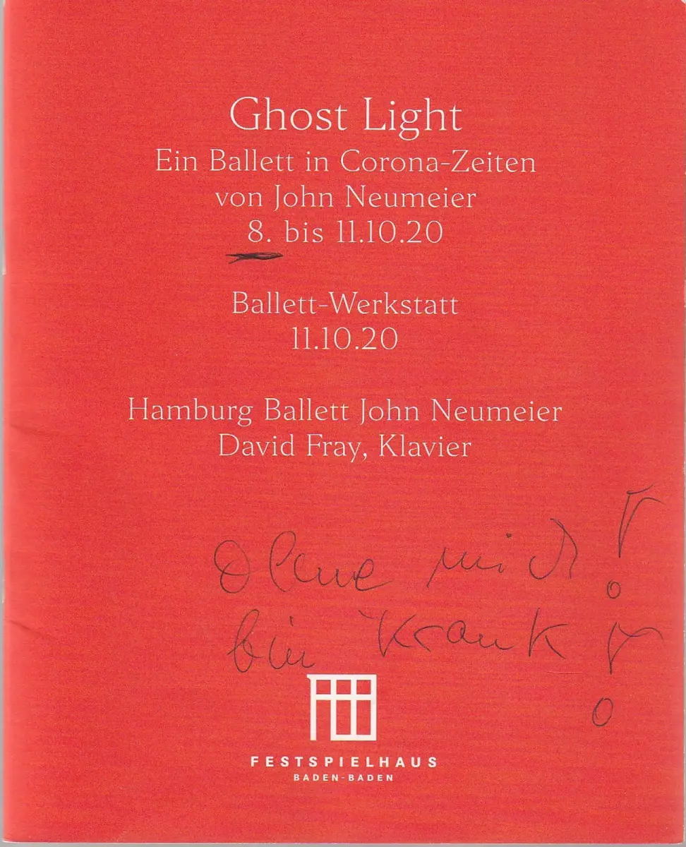 Festspielhaus und Festspiele Baden-Baden, Jörn Rieckhoff, Wolfgang Müller, Eva Maria Jahn: Programmheft GHOST LIGHT BALLETT IN CORONA ZEITEN von JOHN NEUMEIER 8. bis 11. Oktober 2020.