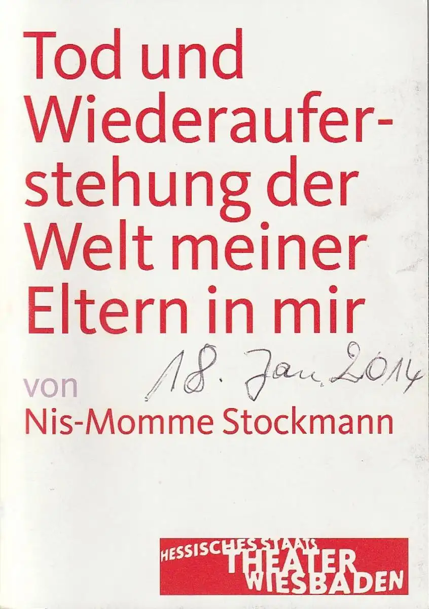 Titel: Programmheft Nis Momme Stockmann TOD UND WIEDERAUFERSTEHUNG DER WELT MEINER ELTERN IN MIR Premiere 18. Januar 2014 Kleines Haus Spielzeit 2013 / 2014