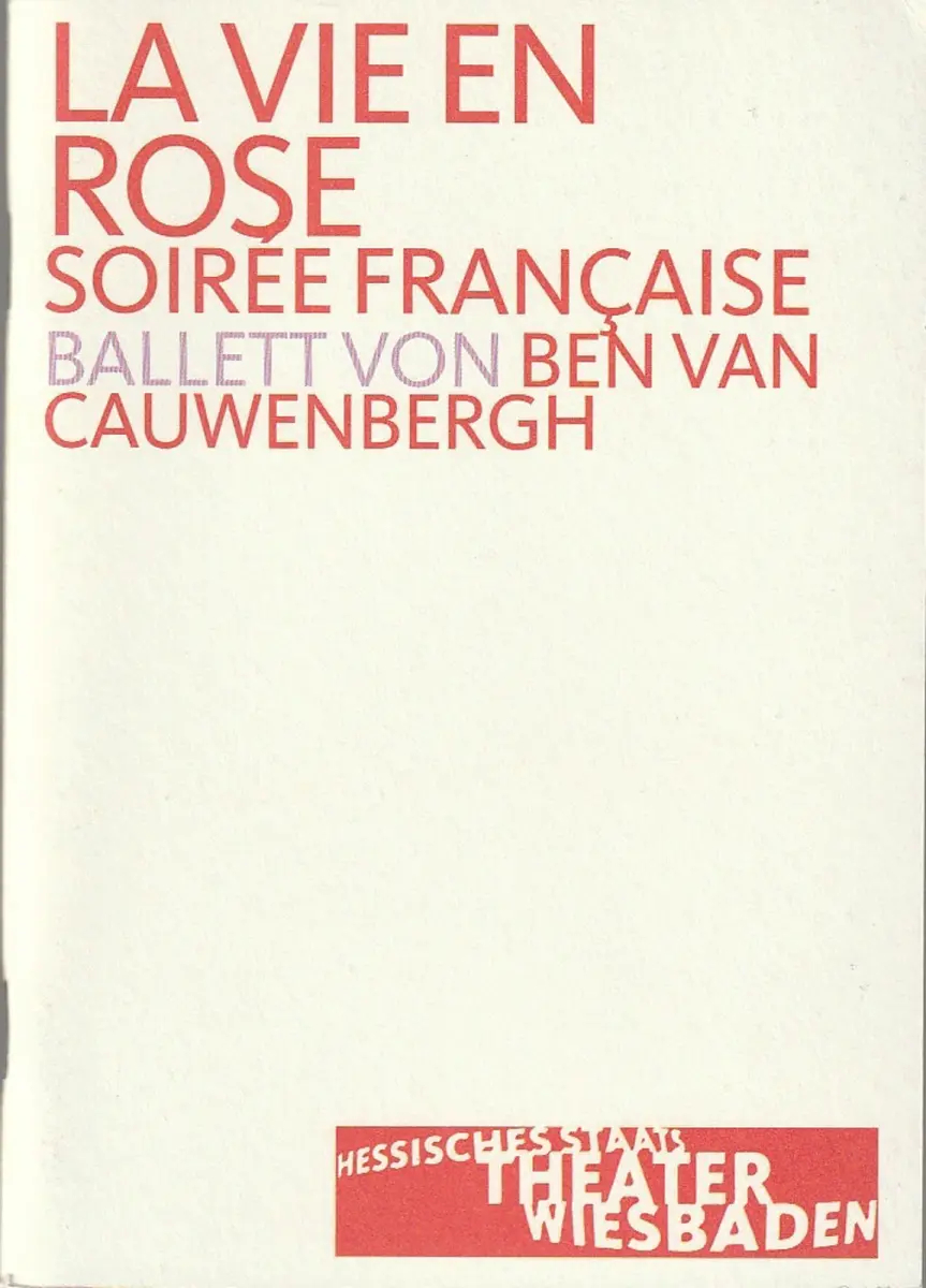 Ballett von Ben van Cauwenbergh. Musik: John Adams und Chansons von Maurice Chevalier, Edith Piaf und Jacques Brel. Choreographie und Kostüme: Ben van Cauwenbergh. Bühne: Ben van Cauwenbergh / Thomas Märker - Theaterprogramm, Opernprogramm, Ballettprogramm, Musicalprogramm, Konzertprogramm, Theatermemorabilia, Programmhefte Sammlung, deutsche Theatergeschichte.