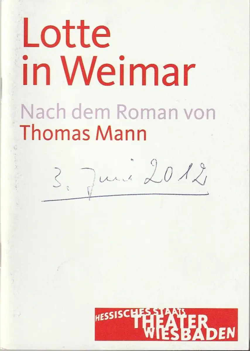 Hessisches Staatstheater Wiesbaden Schauspiel, Manfred Beilharz, Anika Bardos, Sophie Odenstein: Programmheft Thomas Mann LOTTE IN WEIMAR Premiere 3. Juni 2012 Spielzeit 2011 / 12.