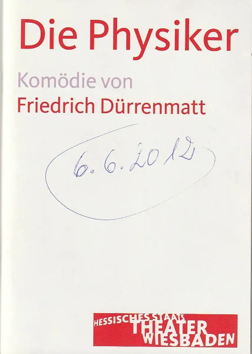 Hessisches Staatstheater Wiesbaden Schauspiel, Manfred Beilharz, Barbara Wendland: Programmheft Friedrich Dürrenmatt DIE PHYSIKER Premiere 6. Juni 2013 Spielzeit 2012 / 13.