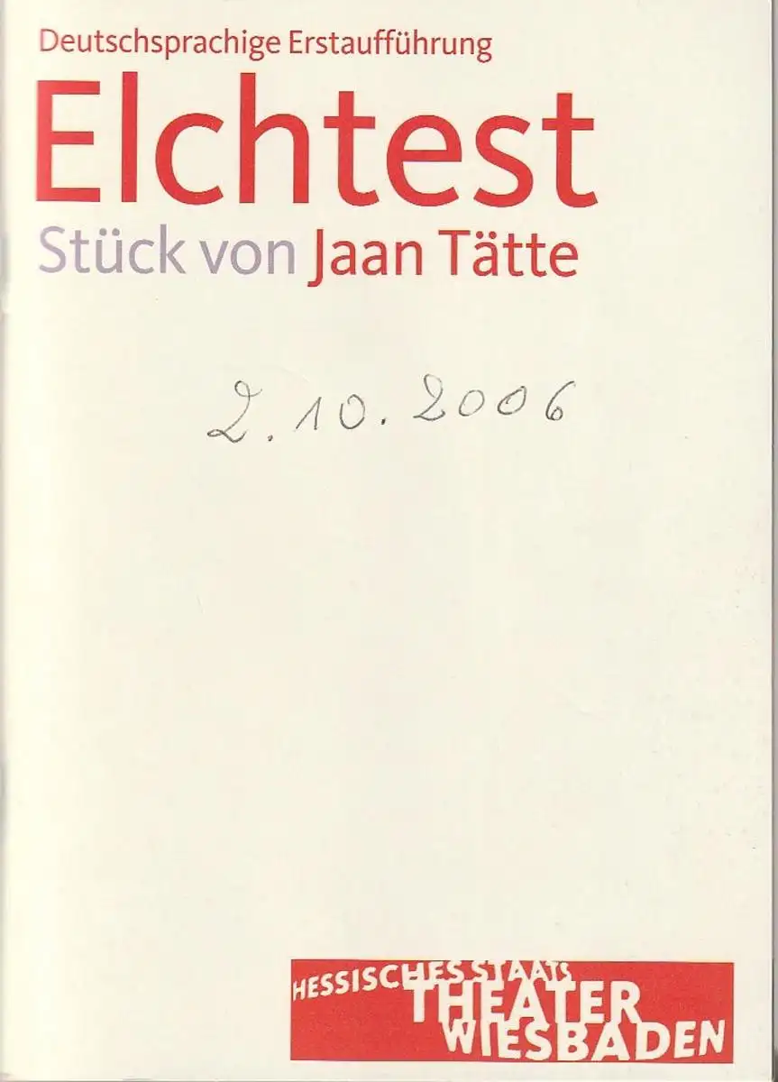 original Heft, Format ca. 17 x 12 cm, 54 Seiten, einige Probenfotos, beiliegender Zeitungsausschnitt zur Aufführung. Zustand: befriedigend, Datum von Hand auf Deckel, ACHTUNG Erste 3 Blatt mit Feuchtigkeitswelle