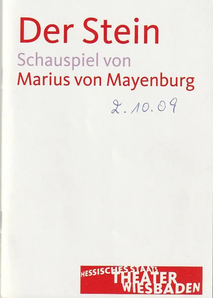 Hessisches Staatstheater Wiesbaden Schauspiel, Manfred Beilharz, Carola Hannusch: Programmheft Marius von Mayenburg DER STEIN Premiere 2. Oktober 2009 Spielzeit 2009 / 10.