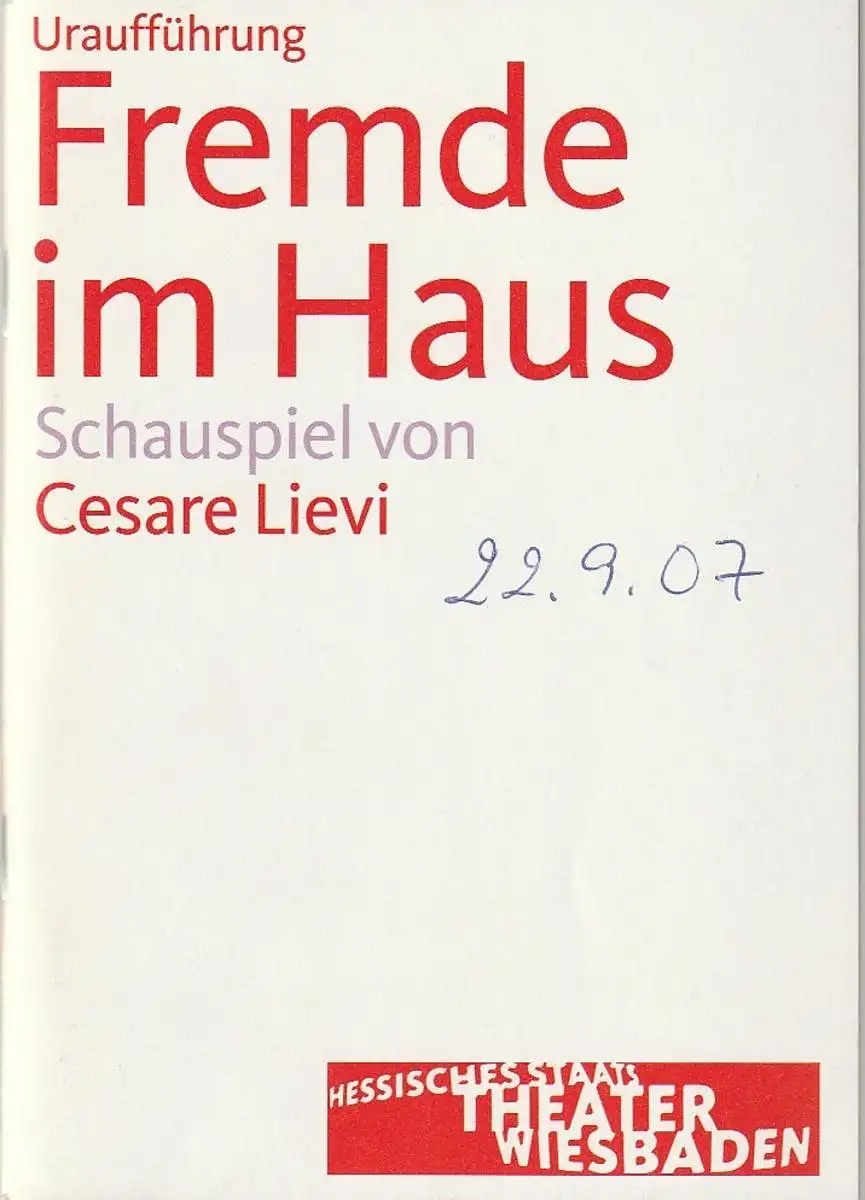 Hessisches Staatstheater Wiesbaden Schauspiel, Manfred Beilharz, Dagmar Borrmann: Programmheft Uraufführung Cesare Lievi FREMDE IM HAUS 22. September 2007 Spielzeit 2007 / 08.