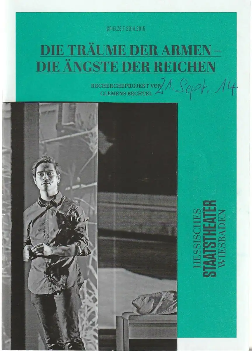 Hessisches Staatstheater Wiesbaden, Uwe Eric Laufenberg, Sascha Kölzow, Andreas Etter ( Probenfotos ): Programmheft Uraufführung DIE TRÄUME DER ARMEN - DIE ÄNGSTE DER REICHEN 21. September 2014 Spielzeit 2014 / 15 Heft 05.