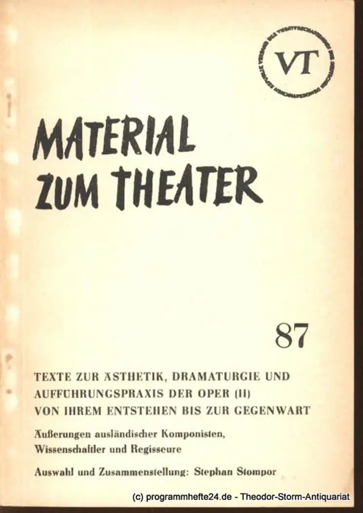 Beiträge zur Theorie und Praxis des sozialistischen Theaters. Texte zur Ästhetik, Dramaturgie und Aufführungspraxis der Oper ( II ) von ihrem Entstehen bis zur Gegenwart. Äußerungen ausländischer Komponisten, Wissenschaftler und Regisseure. Auswahl und Zusammenstellung: Stephan Stompor - Theaterprogramm, Opernprogramm, Ballettprogramm, Musicalprogramm, Konzertprogramm, Theatermemorabilia, Programmhefte Sammlung, deutsche Theatergeschichte.