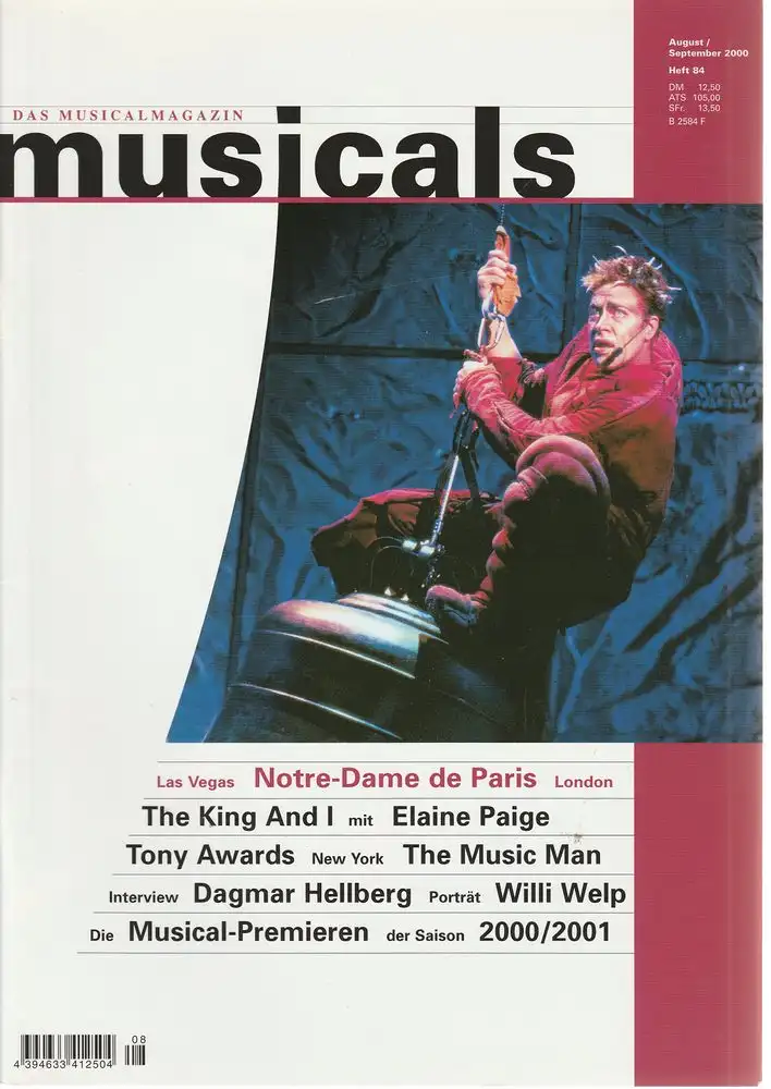 Notre-Dame de Paris, The King and I, Tony Awards, The Music Man, Dagmar Hellberg, Willi Welp, Musical-Premiere der Saison 2000 / 2001 - Theaterprogramm, Opernprogramm, Ballettprogramm, Musicalprogramm, Konzertprogramm, Theatermemorabilia, Programmhefte Sammlung, deutsche Theatergeschichte.