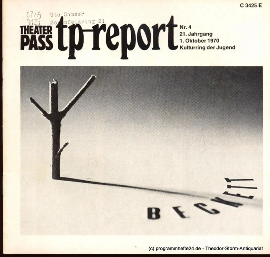 Theaterpaß. tp-report Nr. 4 21. Jahrgang 1. Oktober 1970 ( Beckett )