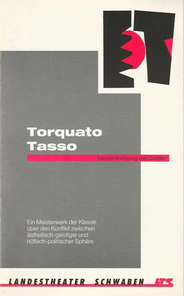Landestheater Schwaben LTS, Norbert Hilchenbach, Susanne Neuhoff: Programmheft TORQUATO TASSO von Johann Wolfgang von Goethe. Premiere 27. Februar 1993 Spielzeit 1992 / 93 Heft 8.