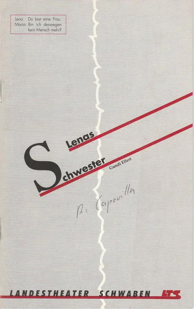 Landestheater Schwaben, Norbert Hilchenbach, Susanne Neuhoff: Programmheft Gundi Ellert: LENAS SCHWESTER Premiere 8. Dezember 1990 Spielzeit 1990 / 91 Heft 5.