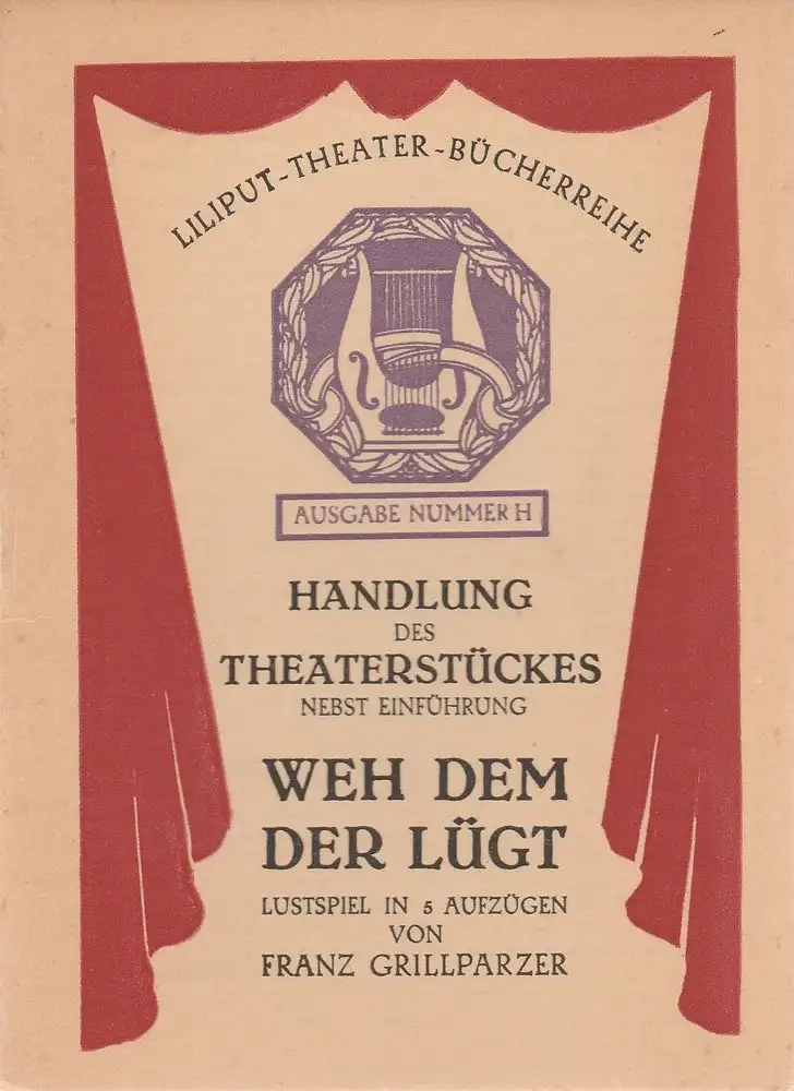 Handlung des Theaterstückes nebst Einführung: Weh dem der lügt Lustspiel in fünf Aufzügen von Franz Grillparzer - Theaterprogramm, Opernprogramm, Ballettprogramm, Musicalprogramm, Konzertprogramm, Theatermemorabilia, Programmhefte Sammlung, deutsche Theatergeschichte.