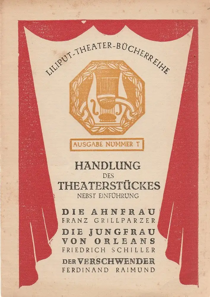 Handlung des Theaterstückes nebst Einführung: Die Ahnenfrau Franz Grillparzer / Die Jungfrau von Orleans Friedrich Schiller / Der Verschwender Ferdinad Raimund - Theaterprogramm, Opernprogramm, Ballettprogramm, Musicalprogramm, Konzertprogramm, Theatermemorabilia, Programmhefte Sammlung, deutsche Theatergeschichte.