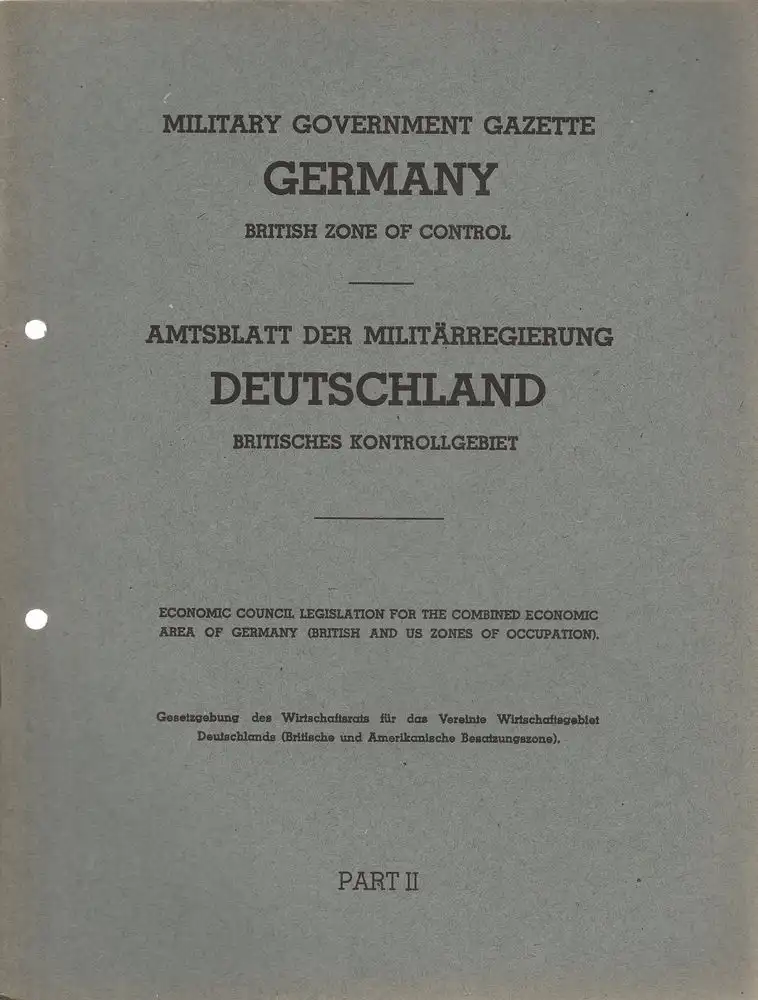 Militärregierung Deutschland: Military Government Gazette Germany British Zone of Control PART II Amtsblatt der Militärregierung Deutschland Britisches Kontrollgebiet.