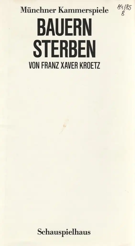 Titel: Programmheft Uraufführung Franz Xaver Krötz BAUERN STERBEN 9. Juni 1985 Schauspielhaus Spielzeit 1984 / 85 Heft 8