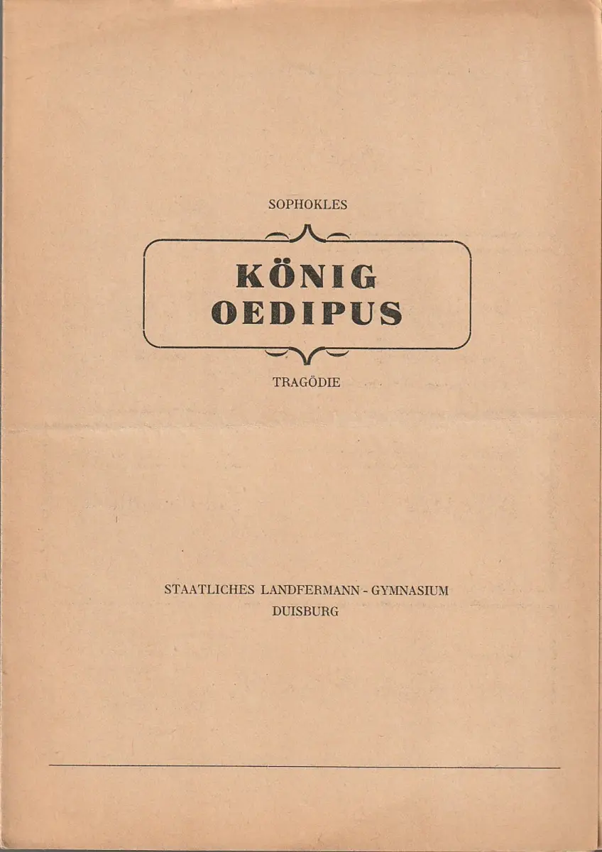 Staatliches Landfermann-Gymnasium Duisburg: Programmheft Sophokles KÖNIG ÖDIPUS 16./17./18. März 1951 Aula des Staatlichen Landfermann-Gymnasiums Duisburg.