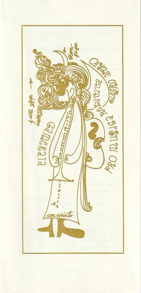 Ausführende: Käthe Röschke, Alt. Die Camerata pro musica rediviva des Staatlichen Sinfonieorchesters: Ursula Kúnze, Horst Hammer, Violine / Sonja Kummer, Viola / Rolf Kunze Violoncello und Viola da Gamba / Horst Görsch, Kontrabaß / Dieter Klett, Thomas Matzke, Oboe / Simon Ulsperger, Fagott/ Holmer Hegenbart, Paul Schirmeier, Horn, Eva-Maria Rudolph, Cembalo. Programm: DIETRICH BUXTEHUDE: Jubilate Domine für Alt, Viola da Gamba und Basso continuo. JOSEPH VON MANNL: Cassation D-Dur für Kontrabaß solo, Oboe, Viola und zwei Hörner. GEORG FRIEDRICH HÄNDEL: Triosonate D-Dur für zwei Oboen und Basso continuo. GEORG PHILIPP TELEMANN: Cantate oder Trauer-Mucic eines kunsterfahrenen Canarien-Vogels - Theaterprogramm, Opernprogramm, Ballettprogramm, Musicalprogramm, Konzertprogramm, Theatermemorabilia, Programmhefte Sammlung, deutsche Theatergeschichte.