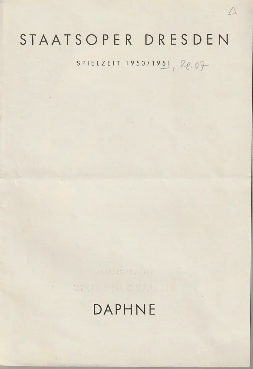 Titel:Programmheft Richard Strauß DAPHNE 28. Juli 1951 Großes Haus der Staatstheater Spielzeit 1951 / 52
