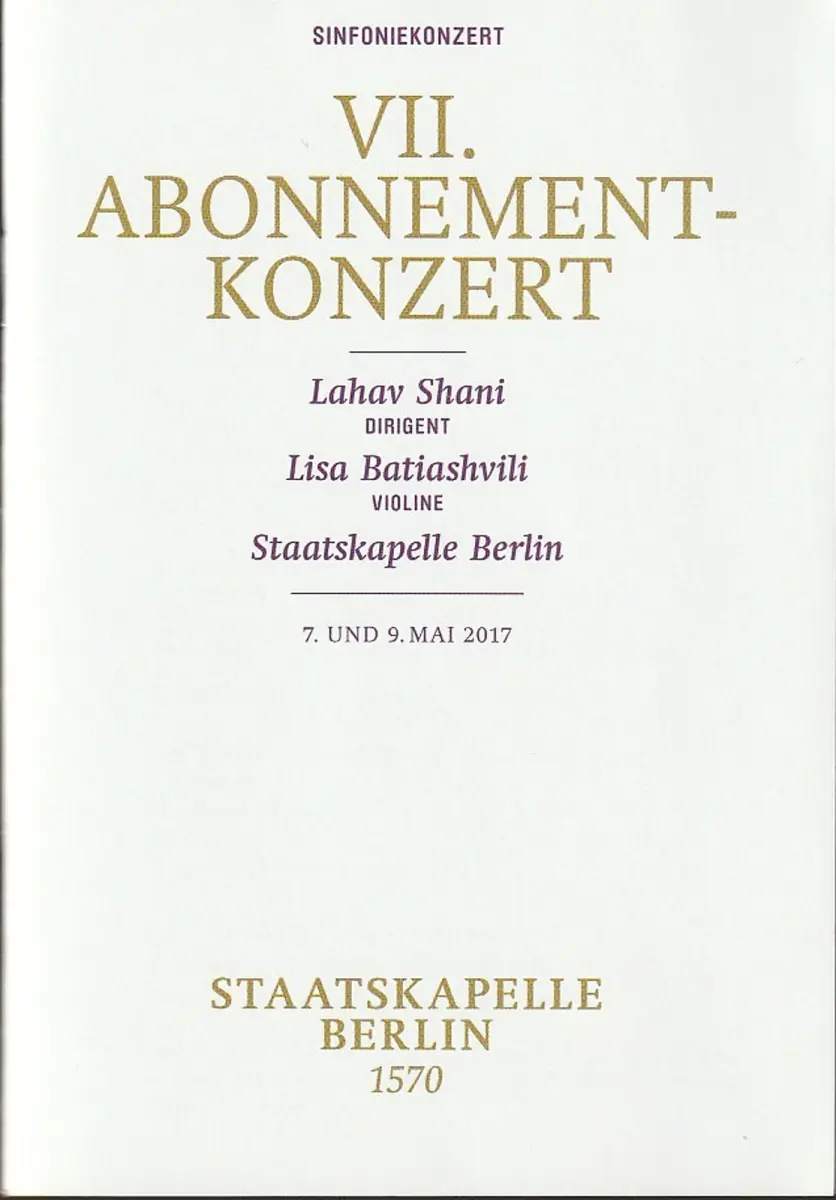 Programmheft VII. ABONNEMENT-KONZERT LAHAV SHANI / LISA BATIASHVILI / STAATSKAPELLE BERLIN 7. Mai 2017 Philharmonie