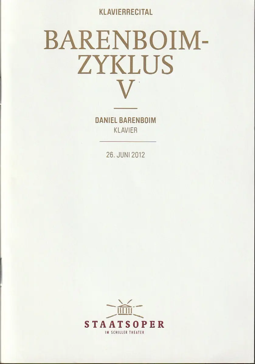 Staatsoper Unter den Linden, Jürgen Flimm, Daniel Barenboim, Detlef Giese: Programmheft Klavierrecital BARENBOIM - ZYKLUS V Daniel Barenboim 26. Juni 2012 Schiller-Theater.