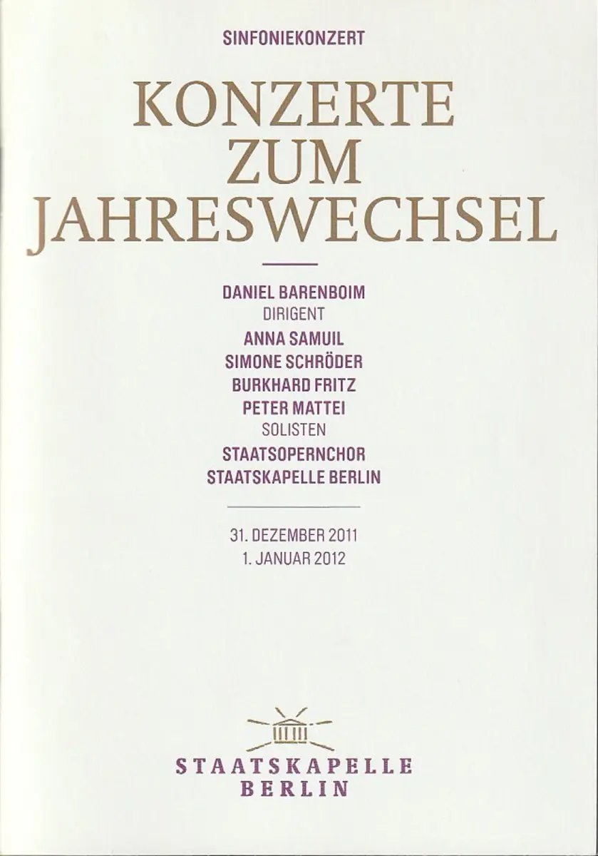 Staatsoper Unter den Linden, Jürgen Flimm, Daniel Barenboim, Yuri Isabella Preiter: Programmheft SINFONIEKONZERT KONZERTE ZUM JAHRESWECHSEL 31. Dezember 2011 / 1. Januar 2012 Schiller Theater.