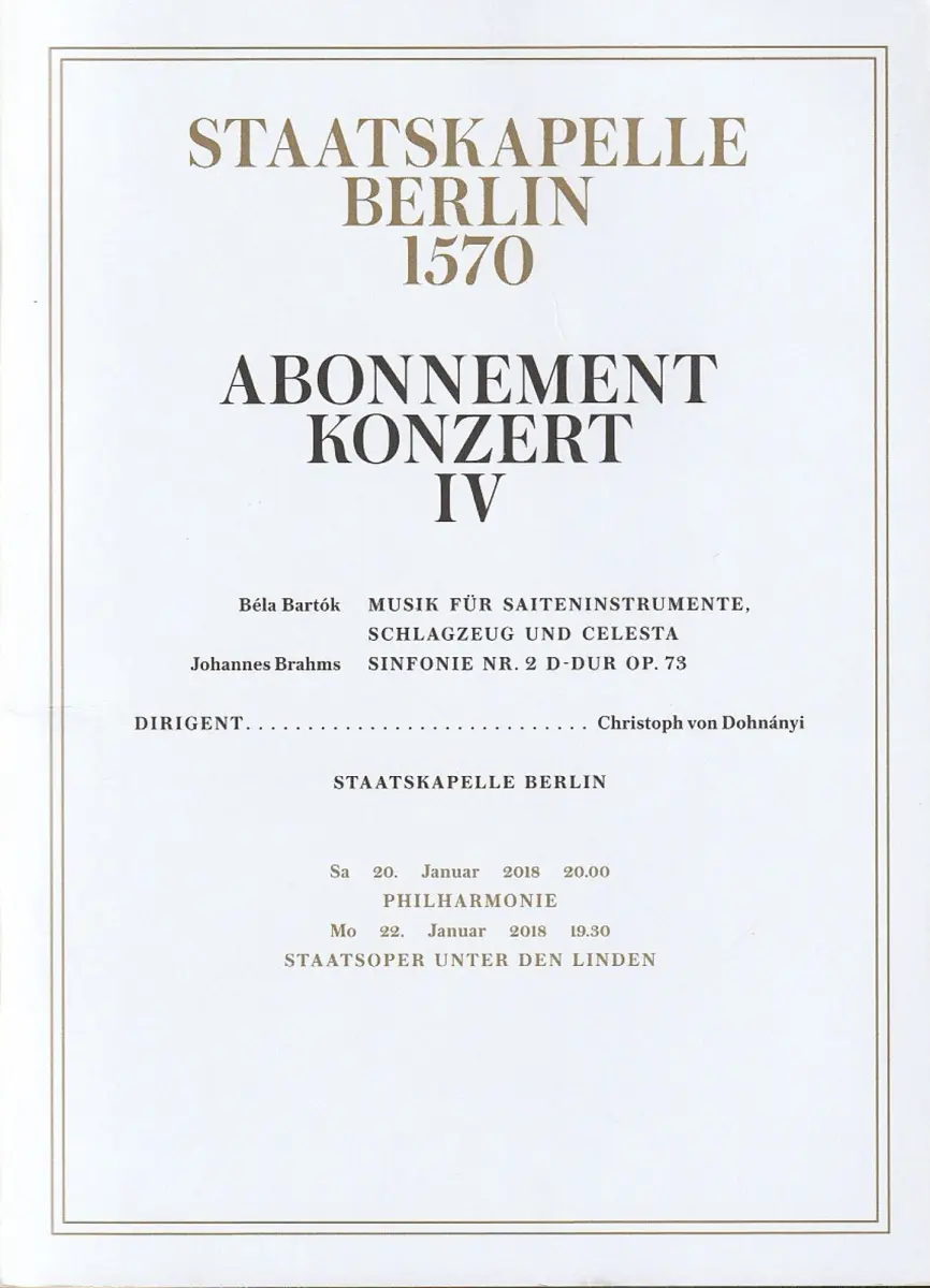 Titel:Programmheft ABONNEMENTKONZERT IV 20. Januar 2018