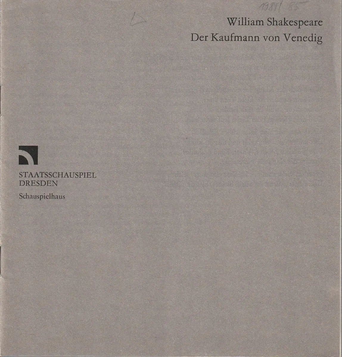 Staatsschauspiel Dresden, Gerhard Wolfram, gerhard Piens: Programmheft William Shakespeare DER KAUFMANN VON VENEDIG Premiere 11. Januar 1985 Spielzeit 1984 / 85.